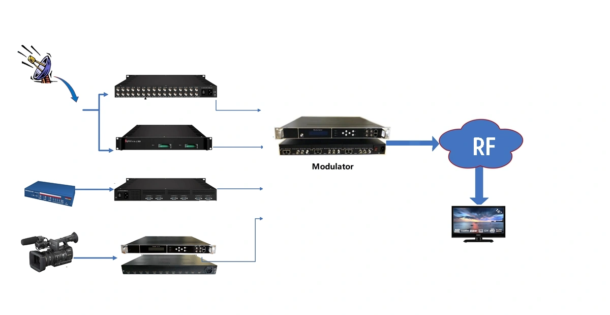 - Modülatörler; Verileri koaksiyel kablolar için QAM/DVB-T sinyallerine dönüştürür.